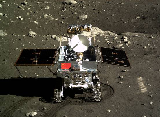 图2:地形地貌相机拍摄的“玉兔号”月球车及首张五星红旗图像