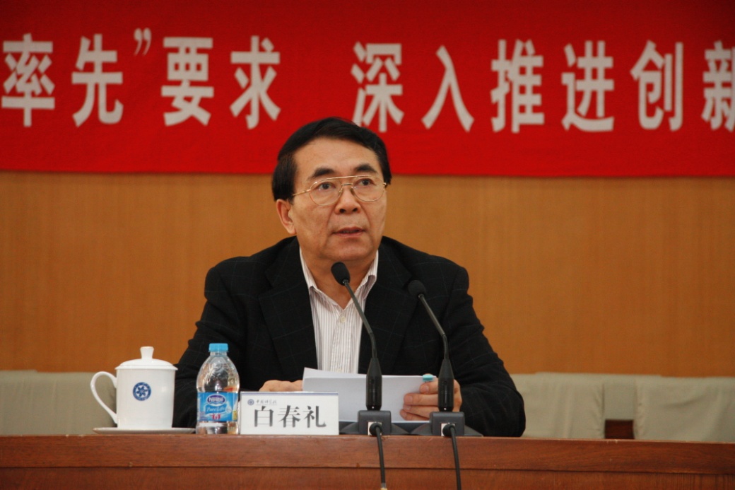 白春礼指出,党的十八大以来,以习近平同志为总书记的党中央,高度重视组织工作和干部队伍建设,提出了一系列新思路和新举措。当前,中科院正在深入贯彻落实习近平总书记提出的“四个率先”要求,深入贯彻党的十八届三中全会精神,研究制订和组织实施“率先行动”计划暨全面深化改革纲要。干部队伍建设和干部人事制度改革,既是“率先行动”计划暨全面深化改革纲要的重要内容,也是其得以实施的组织保障,必须放在全院工作中十分重要的位置上。