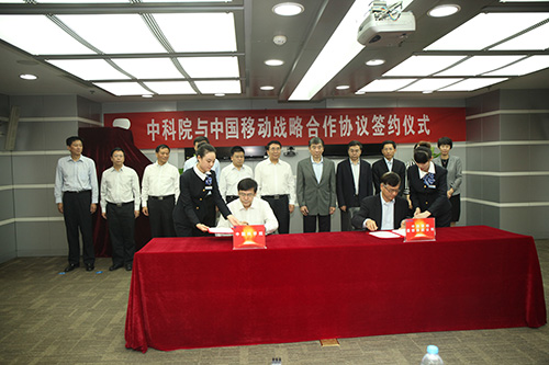 与中国移动通信集团公司战略合作协议签约仪式在北京举行。中科院院长白春礼、中国移动董事长奚国华出席签约仪式并讲话,中科院副院长阴和俊、中国移动总裁李跃代表双方签署战略合作框架协议,中国移动副总裁李正茂主持签约仪式。