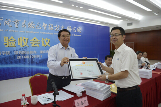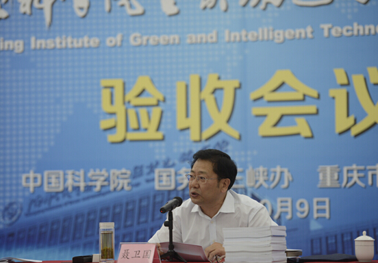 、国务院三峡办、重庆市人民政府筹建三方组成的验收委员会的验收,标志着重庆研究院经过三年多时间的筹建,正式建成。中科院院长白春礼、国务院三峡办主任聂卫国、重庆市市长黄奇帆、国务院三峡办副主任陈飞、重庆市副市长吴刚出席验收会。验收会由中科院副院长施尔畏主持。