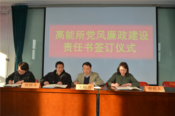 会议期间,按照中纪委关于落实反腐倡廉主体责任的有关要求,王贻芳等所领导分别与主管部门的中层干部签订了反腐倡廉建设责任书,潘卫民与各党支部书记签订了党风廉政建设责任书,把研究所反腐倡廉工作的各项目标、责任落实到人。