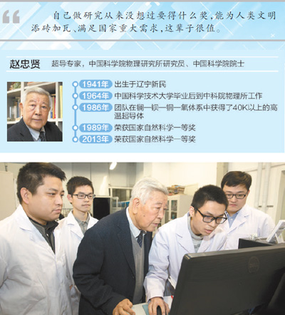 如今,已过古稀之年的赵忠贤仍然在奇妙的超导世界中探索……他希望找到新的组合,寻找到临界温度更高、能广泛应用于实际生活的超导体;同时搞清楚超导机理,关注新材料、新现象,为超导研究的第三次突破提供信息。