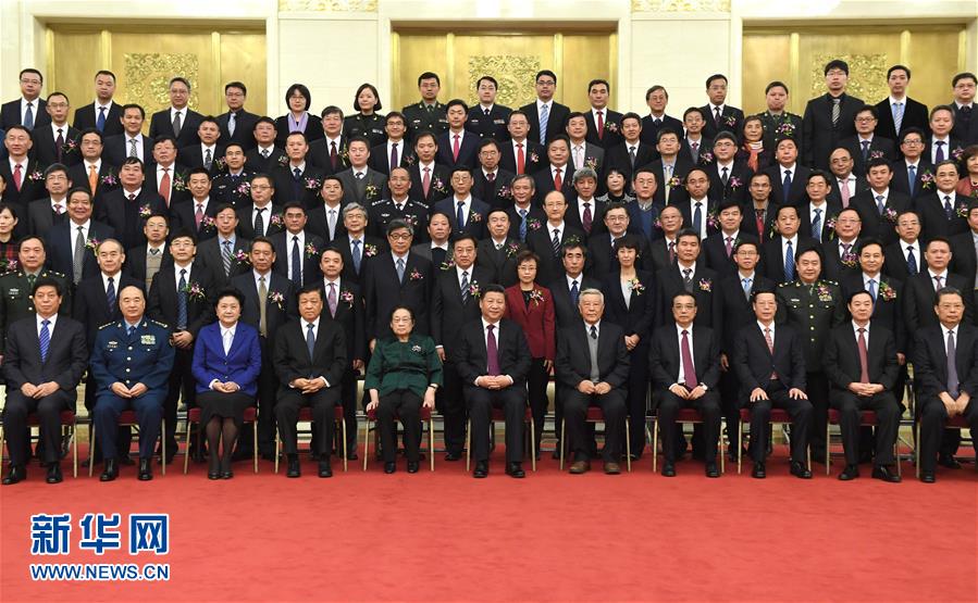 1月9日,2016年度国家科学技术奖励大会在北京人民大会堂隆重举行。党和国家领导人习近平、李克强、刘云山、张高丽等出席大会并为获奖代表颁发奖励证书。会前,习近平等党和国家领导人会见获奖代表并合影。新华社记者 李学仁 摄