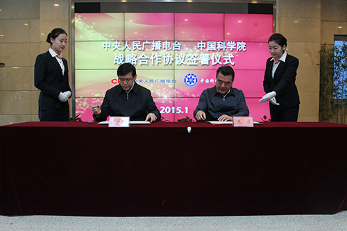 中央人民广播电台副台长王晓晖、有关业务部门、下属公司以及中科院重大科技任务局、科学传播局、有关研究所的相关负责人员参加了签约仪式。