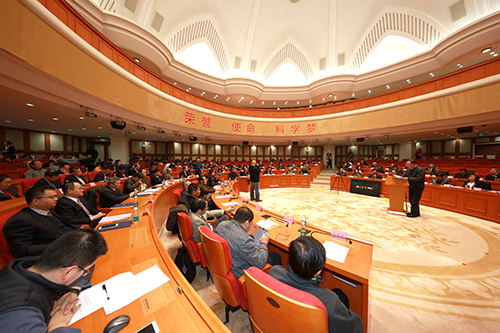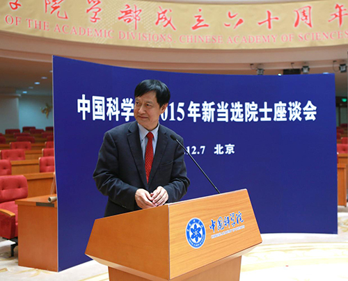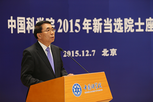 2015年新当选院士座谈会在北京召开,中科院院长、学部主席团执行主席白春礼为新当选院士颁发院士证书并发表讲话。