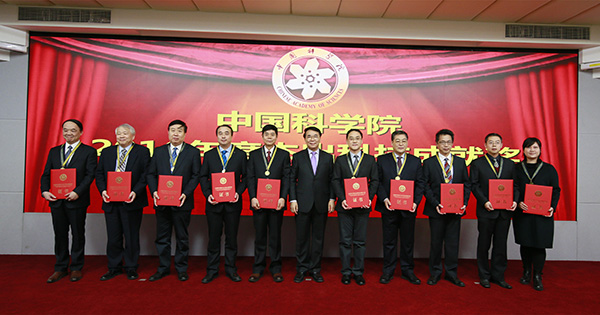 白春礼向获奖集体和个人颁发2016年度中科院杰出科技成就奖