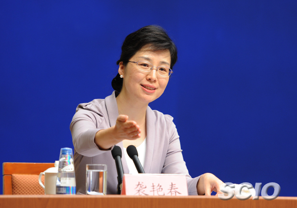 国新办新闻发言人袭艳春邀请记者提问(吴晓山 摄)