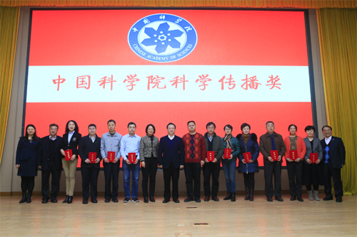 会上还颁发了2014—2015年度中科院科学传播奖,中科院文献情报中心等10家单位获得科学传播先进单位奖,19家单位获得单项工作先进单位奖;中国科大范琼等40人获得科学传播先进个人奖。