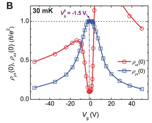 图三:在Cr掺杂的(Bi,Sb)2Te3拓扑绝缘体磁性薄膜中测量到的霍尔电阻