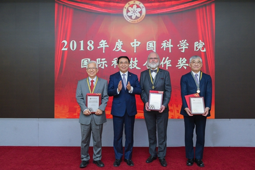中科院国际科技合作奖设立于2007年,旨在奖励在与中科院开展长期合作,并在突破关键技术和产出重大成果、建设大科学装置以及培养中科院科研人才方面做出过杰出贡献的优秀外籍人才,同时鼓励和集聚更多的全球科技人才加入中科院共同开展科技创新。伙计合作奖至今,已有34位外籍专家获得中科院国际科技合作奖,经推荐,其中有24位获得中华人民共和国国际科技合作奖,19位获得中华人民共和国友谊奖。