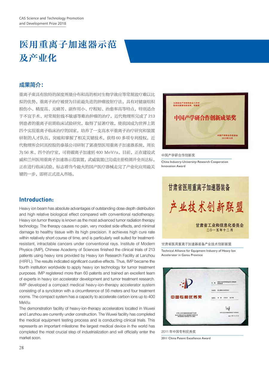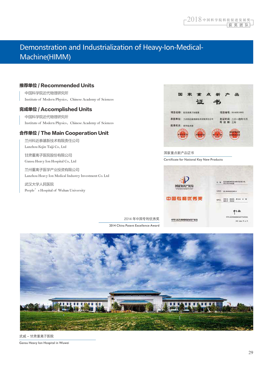 获奖团队:医用重离子加速器示范及产业化团队