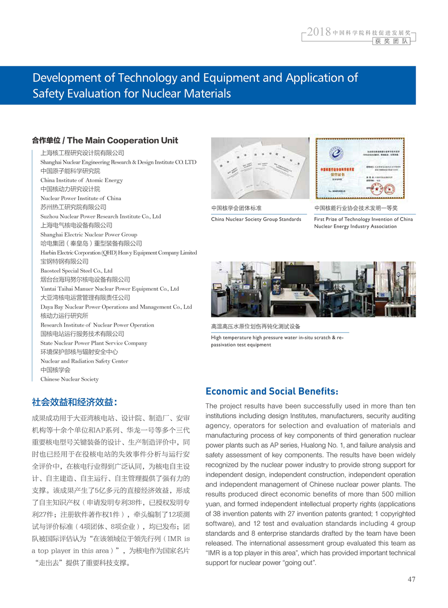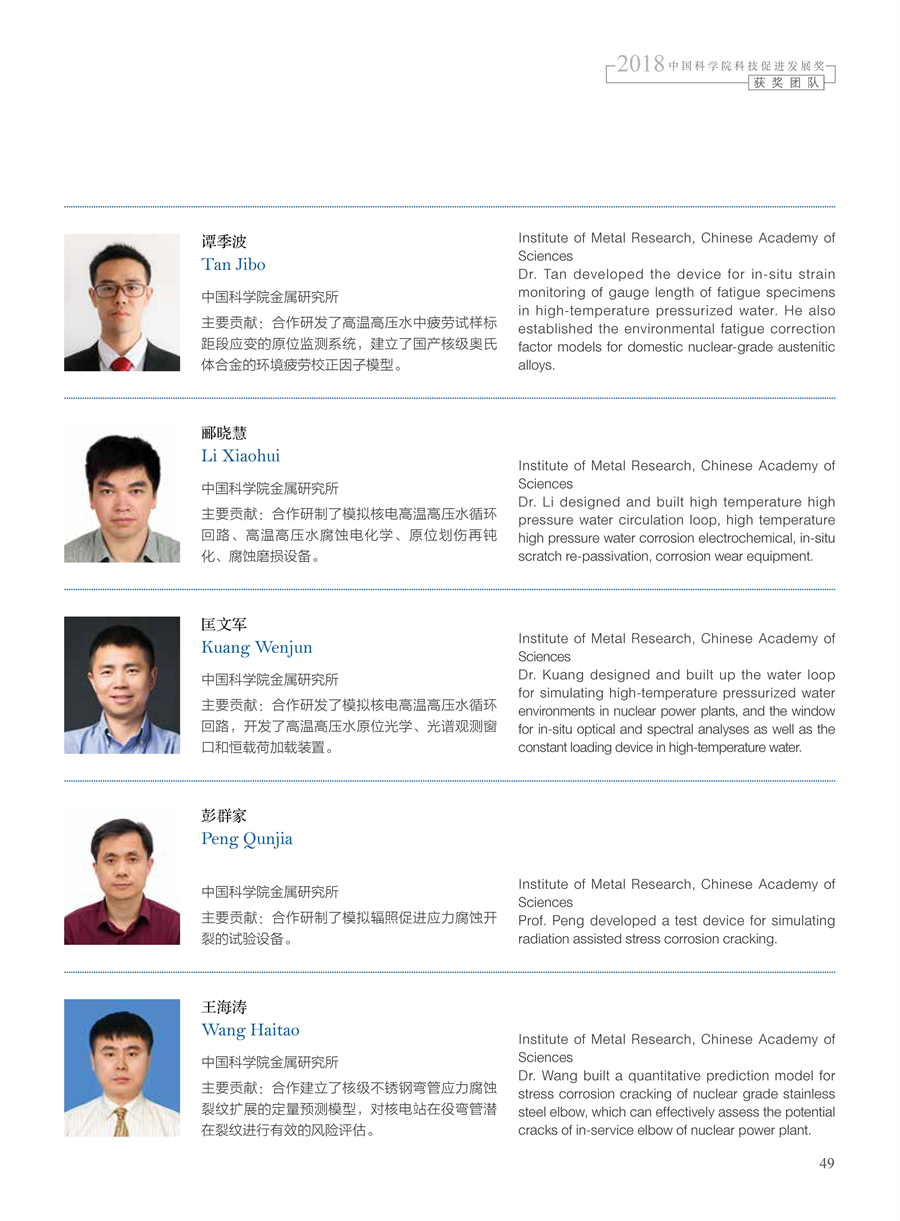 获奖团队:核电材料测试技术与成套装备及安全评价应用团队