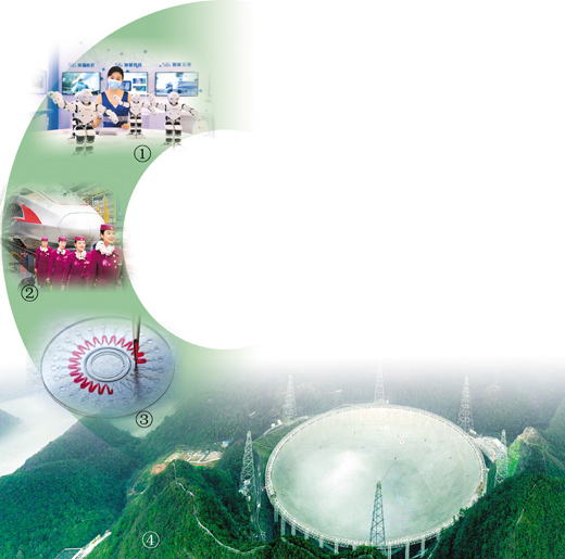 图片说明:图①:2020年9月6日,参观者在南京国际软博会上观看机器人舞蹈。杨素平摄(人民图片)图②:2020年12月23日,复兴号CR400AF动车组在重庆亮相。新华社记者 唐奕摄 图③:2020年3月10日,中国科学家研发的六项呼吸道病毒核酸检测试剂盒。蒋文杰摄(人民图片) 图④:位于贵州省黔南布依族苗族自治州平塘县的“中国天眼”(2020年1月9日拍摄)。新华社记者 欧东衢摄