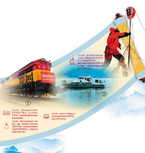 国家统计局日前发布的数据显示,2020年中国经济总量首次突破100万亿元人民币,国内生产总值同比增长2.3%。尽管有新冠肺炎疫情影响,中国仍逆势而上,成为全球唯一实现正增长的主要经济体,交出一份高含金量的经济答卷。