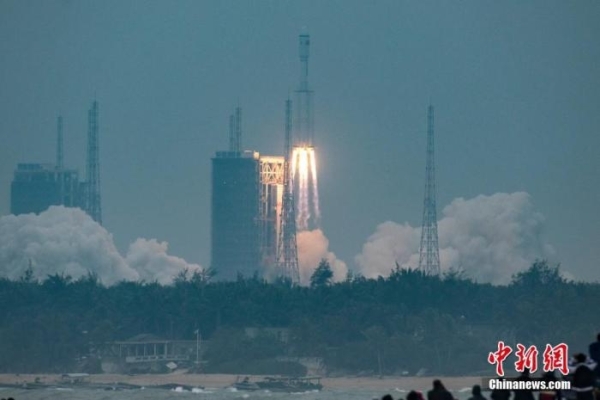 资料图为长征八号运载火箭在中国文昌航天发射场发射。骆云飞 摄