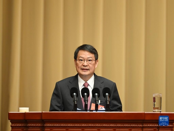 3月7日,全国政协十三届五次会议举行视频会议。12名委员作大会发言。这是在主会场,高鸿钧委员代表无党派人士界作大会发言。新华社记者 翟健岚 摄