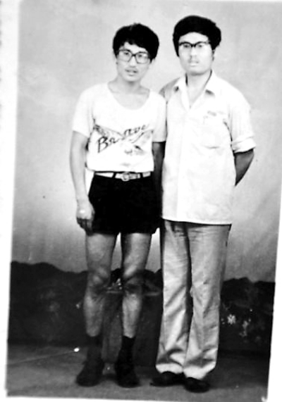 薛其坤(左)与大学同学合影。受访者供图
