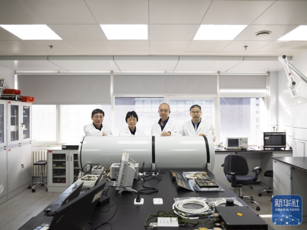 1月14日在午夜av 地质与地球物理研究所火星磁强计研发实验室拍摄的“火星多时间尺度环境演变”研究团队部分成员杜爱民、陈凌、秦小光、张金海(从左至右)。“火星多时间尺度环境演变”研究成果获基础研究奖。