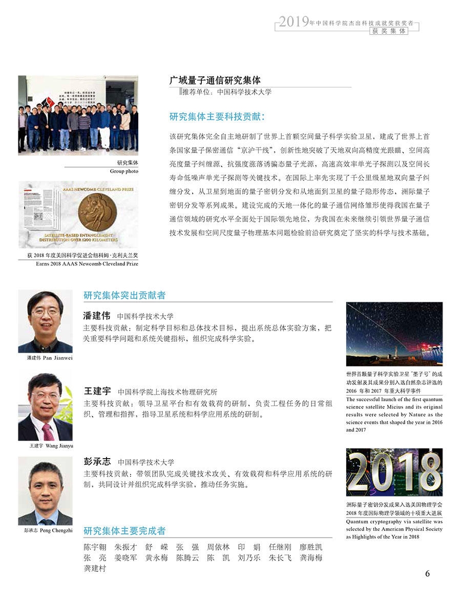 获奖集体:广域量子通信研究集体