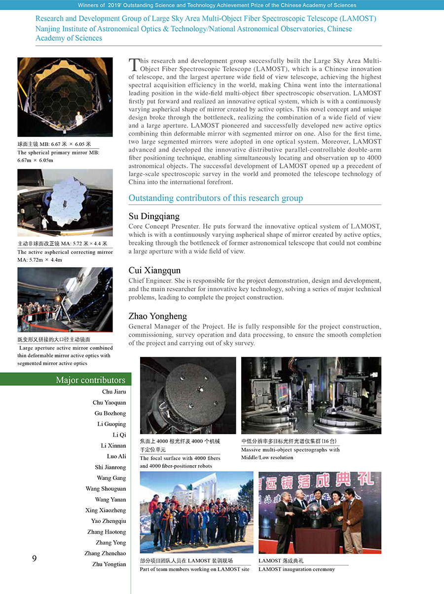 获奖集体:“大天区面积多目标光纤光谱天文望远镜”(LAMOST)工程研究集体