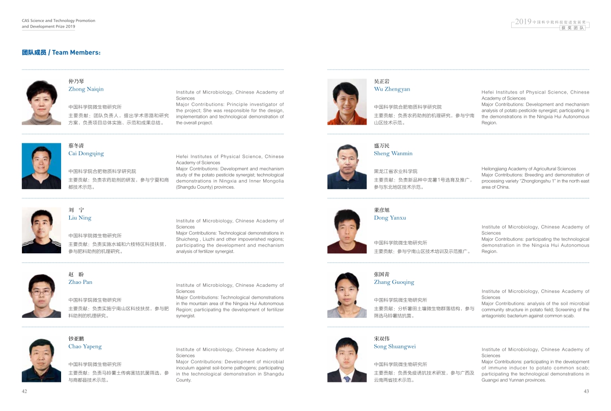 获奖团队:马铃薯化肥农药增效技术研发、产业化与精准扶贫团队