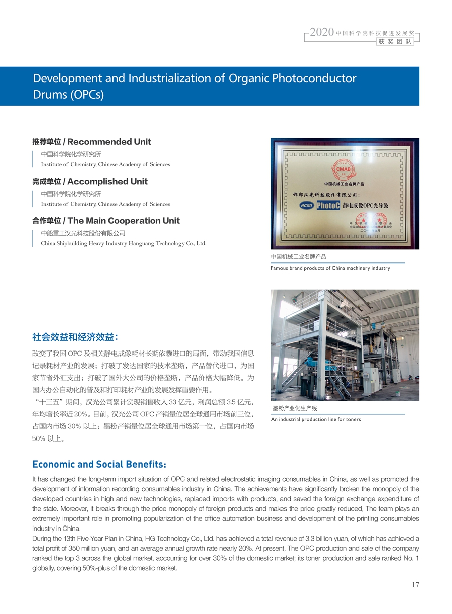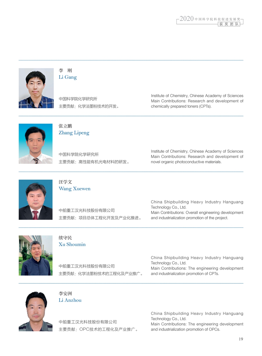获奖团队:有机光导鼓及其相关产品的技术开发与产业化应用团队