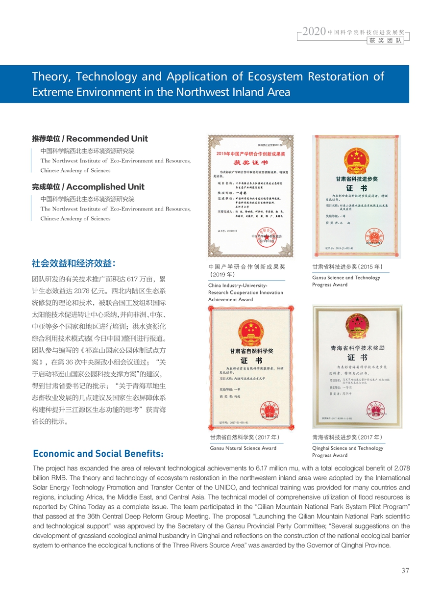 获奖团队:西北内陆区极端环境生态系统修复理论、技术及其应用团队