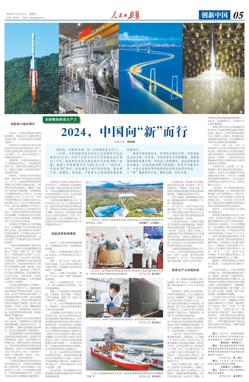 2024年,中国创新领域捷报频传,大国重器亮点纷呈,创新成果竞相涌现。