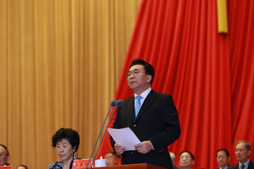 第十七次院士大会、中国工程院第十二次院士大会在北京人民大会堂隆重开幕。这是中国工程院院长周济致开幕词。新华社记者 庞兴雷 摄