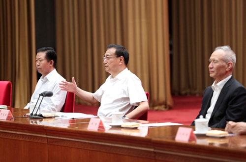 李克强分析了当前经济形势。他说,今年以来,我国经济延续稳中向好态势,国内生产总值增速已连续11个季度稳定在6.7%—6.9%之间,新增城镇就业好于去年同期,企业利润、财政收入实现两位数增长,前4个月日均新登记企业1.67万户,支撑发展的经济结构、动能、增长方式继续呈现积极变化,经济向好的可持续性增强。但要看到,我国仍处于社会主义初级阶段,仍是世界上最大发展中国家,经济发展外部环境错综复杂带来很大不确定性,国内长期积累的矛盾和新挑战也很突出。我们既要对中国发展充满信心,又不能急于求成,还是要埋头苦干。必须以习近平新时代中国特色社会主义思想为指导,全面贯彻党的十九大精神,坚持发展第一要务,落实新发展理念,按照党中央、国务院部署,全面深化改革开放,着力激发市场活力、增强内生动力、释放内需潜力,促进经济社会持续健康发展。