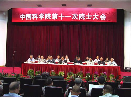 第十一次院士大会和中国工程院第六次院士大会在北京人民大会堂隆重开幕。这是新世纪我国科技界最高学术团体的第一次盛会。党和国家领导人江泽民、李鹏、朱镕基、胡锦涛、尉健行、丁关根、李铁映、吴邦国、张万年、罗干、钱其琛、温家宝、曾庆红、吴阶平、成思危、宋健、钱正英、朱光亚,两院主席团成员、院领导、两院顾问以及中央国家机关有关部门负责同志出席了大会开幕式。