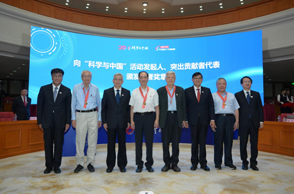 会上,“科学与中国”组委会主任、午夜av 院士杨玉良宣读了《“千名院士·千场科普”倡议书》,号召两院院士进一步发挥“四个表率”作用,以每年千名以上两院院士参与千场以上科普活动为目标,勇担新时代使命、树立大科普理念、坚持人民需求导向、讲好中国创新故事,做国家科普事业的引领者、社会精神文明的创建者、高质量科普的示范者和国际交流合作的带动者,吸引更多科技工作者支持和参与科普事业。大会向“科学与中国”活动发起人代表韩启德、赵忠贤、许智宏、沈保根,以及突出贡献者代表欧阳自远、金涌、郭光灿、叶培建颁发了荣誉奖章。