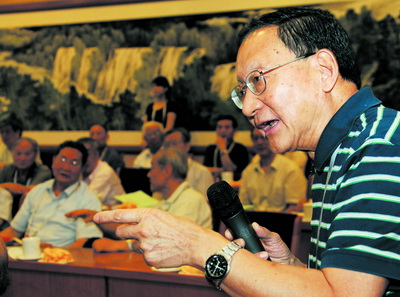 6月8日,中科院院士汪集旸在学术年会上提问。