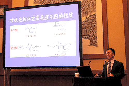 周其林院士作了“手性催化剂的设计合成”的专题报告。报告中说,具有广泛适用性的手性配体和催化剂非常少,通常是一种手性催化剂仅对一个不对称合成反应、有时甚至只对一类反应底物有效,所谓“优势手性催化剂”(privileged chiral catalysts)极其稀少。针对这一情况,他们设计了一类全新的手性螺环配体骨架结构,从这个配体骨架出发,合成了一系列手性螺环双膦配体、单膦配体、膦氮配体、双氮配体及其催化剂。这些手性配体及其催化剂在催化氢化、碳-碳键形成、碳-杂原子键形成等许多不对称合成反应中都表现出优秀的催化活性和手性诱导效果。这些研究表明,手性螺环催化剂是一类“优势手性催化剂”。