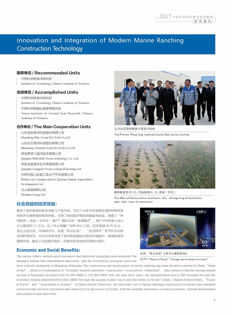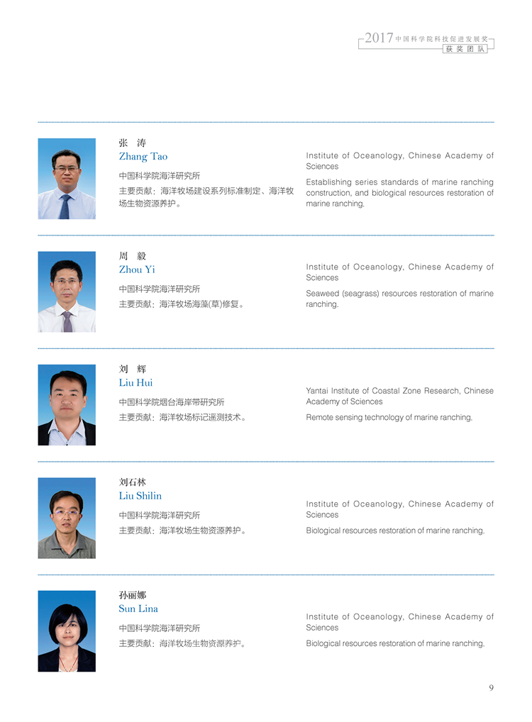 获奖团队:现代海洋牧场构建技术创新与集成应用团队