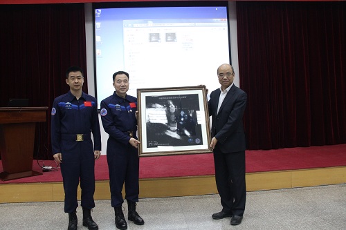 相里斌向景海鹏、陈冬赠送纪念品