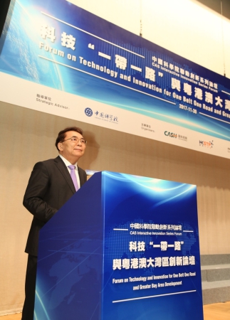 白春礼在致辞中指出,中科院启动和实施了“一带一路”国际科技合作行动计划,重点开展人才培养、科技合作和成果转化以及战略咨询等工作,有力支撑了国家“一带一路”建设。同时,围绕科技支撑粤港澳大湾区建设,中科院与香港高水平大学、科研机构开展了卓有成效的科技合作,为推动双方深层次交流合作奠定了坚实基础。面向未来,希望双方继续加强和深化全面科技合作。一是紧密围绕香港创新发展需求,加强协同创新,力争产出一批有显示度的重大创新成果。同时,集合全院优势资源和力量,全方位参与粤港澳国际科技创新中心建设。二是充分发挥香港国际金融中心的优势,联合有关机构,发起设立绿色发展实验室和创新产业基金,建设技术研发与转化平台、项目融资平台,吸引全球优秀创新资源,促进国际技术转移。三是进一步加强青年科技人才的培养与交流,培育优秀创新创业人才,为双方更广泛的深入合作提供保障。