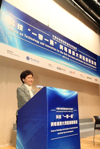 林郑月娥在致辞中表示,香港要大力推动创新科技发展,增加研发开支、给予企业研发开支的税务优惠、吸引更多的科研含量高的企业落户香港,加强香港与海外大学紧密联系,建设青年共享空间,支持初创企业发展并设立创投基金,完善科技基础设施建设的同时在学校、社会、家庭增加科普教育。特区政府已经在创新科技路上认准方向,努力将香港打造成为国际科创中心。