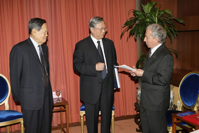 知识创新工程和学部工作的有关情况。格里戈良教授还向路甬祥院长赠送了他的科学著作。程耿东院士、王阳元院士和黄敦教授,国际合作局副局长曹京华、院士工作局副局长刘峰松参加了招待会。