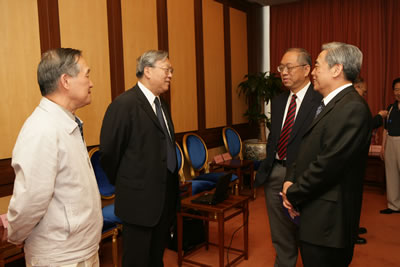 路甬祥院长和丘成桐院士、王阳元院士和程耿东院士亲切交谈