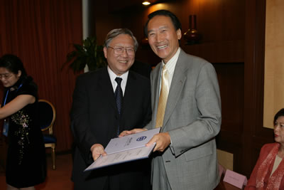 路甬祥院长为胡正明教授颁发外籍院士证书(摄影/李辉)
