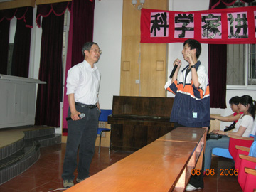 目前的信息储存比50年前提高了100万倍,王鼎盛院士对到场的学生们说,未来如何能够再提高100万倍?答案仍然是需要物理研究的创新和突破。他最后寄语各位中学生,能够实现上述目标这样一个宏伟志向,再次实现这些技术的突破!王鼎盛说,目前30、40岁的教授,已经在这个长征的路上开一个头,现在20几岁的大学生、博士生可能成为未来的主力军,而在座的同学们都有学生都有机会赶上这个机遇,如果同学们有立志从事物理研究的,即使在信息技术相关领域,也大有用武之地。