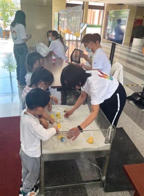 中科院过程工程研究所“小黄鸭戏球”互动实验现场(记者刘梦雅/摄)