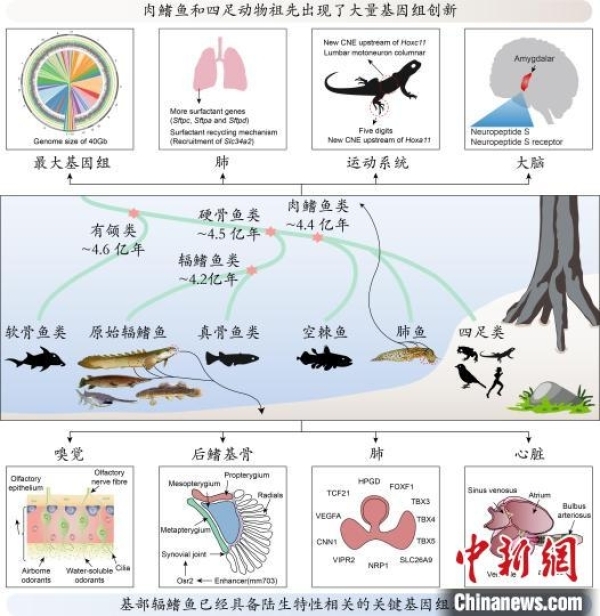 进展二:脊椎动物水生到陆生演化过程的主要遗传创新。中国科协生命科学学会联合体 供图