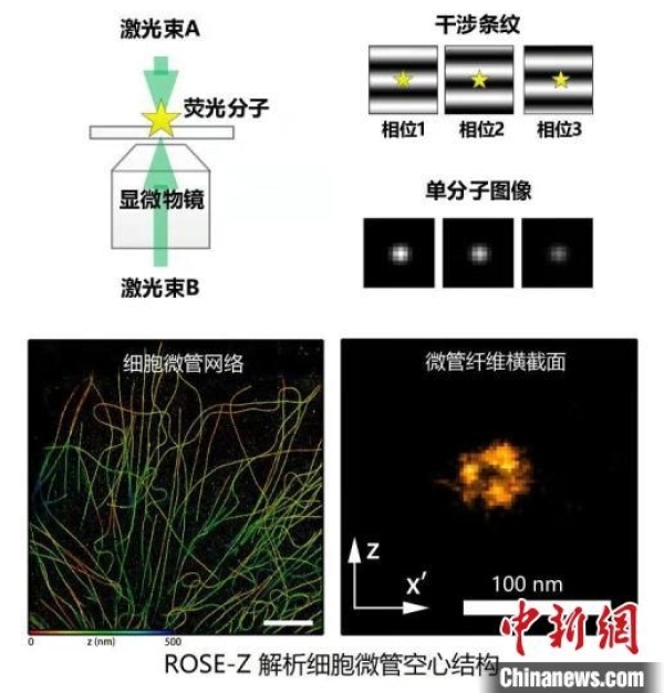 进展九:干涉单分子定位显微镜解析细胞微管空心结构。中国科协生命科学学会联合体 供图