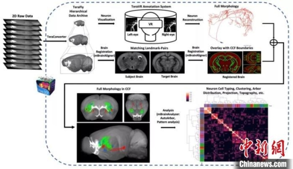 进展十:全脑范围完整神经元形态成像、重建、配准、分析平台和流程。中国科协生命科学学会联合体 供图