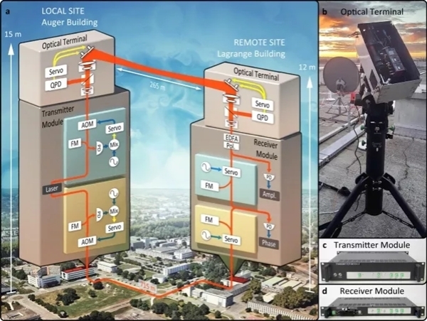 建筑间点对点相位稳定光频传输 图片来源:《自然》