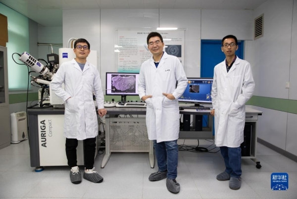 中科院地质与地球物理研究所电子显微镜实验室团队(10月18日摄)。新华社记者 金立旺摄