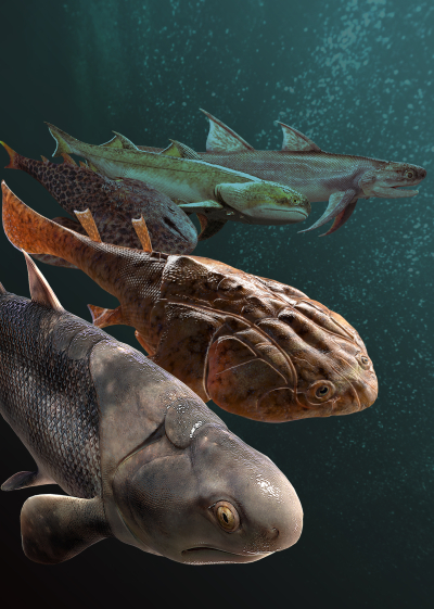中国志留纪早期五种古鱼的三维复原。拟石科技制作