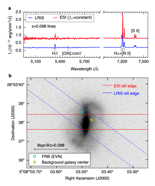 团队通过Keck望远镜对FRB20201124A的宿主星系进行的光谱和高分辨率成像观测